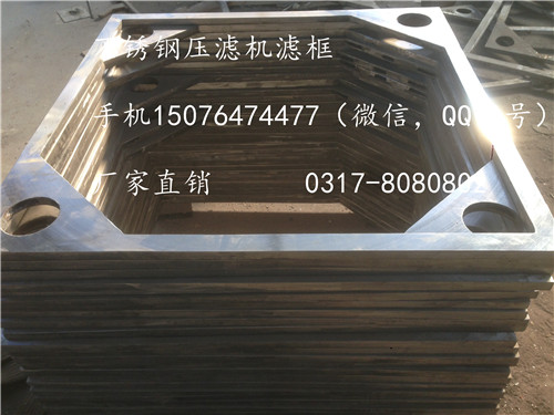 不銹鋼壓濾機濾板型號規格,晨鑫機械。濾板化學性能穩定,無毒、無味,重量輕,強度高(耐高溫、高壓),操作省力。金屬濾板:精鑄成型,耐高溫、高壓。廂式壓濾機主要由止推板(固定濾板)、壓緊板(活動濾板),頭板(與止推板相配),濾板、尾板(與壓緊板相配)、橫梁(扁鐵架)、過濾介質(濾布或濾紙等)、壓緊裝置、集液槽等組成(參見結構和基礎圖)。其中過濾介質和集液槽內用戶自備,也可由本廠代配。我公司生產的壓濾機濾板框內尺寸有250mm320mm450mm630mm800mm1000mm1250mm1500mm1600mm2000mm系列,其它尺寸可定制。